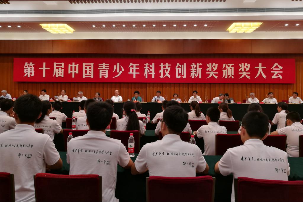 頒獎大會上,劉延東副總理發表重要講話,她勉勵青年學子樹立遠大志向,放飛科學夢想,投身創新實踐,為建設世界科技強國、實現“兩個一百年”目標作出積極貢獻。共青團中央書記處第一書記秦宜智主持大會。中國青少年科技創新獎評委會主任楊樂院士介紹了評審情況,團中央書記處書記傅振邦宣讀了關于頒發第十屆中國青少年科技創新獎的決定,第十屆全國政協副主席、中國工程院主席團名譽主席、中國青少年科技創新獎評委會名譽主任徐匡迪,鄧小平同志親屬鄧楠、鄧榕,國務院、中央文獻研究室、中央黨史研究室、中國科協、教育部、科技部、中國科學院、中國工程院等有關部門負責同志,第十屆中國青少年科技創新獎獲獎學生、中國青少年科技創新獎勵基金2015年支持的大學生“小平科技創新團隊”所在學校團委負責同志和學生代表、中學生科技創新示范競賽項目負責同志等參會。