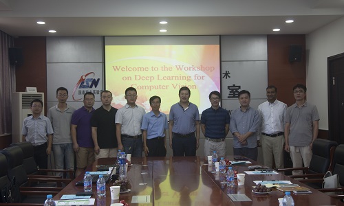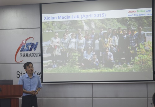 8月18日上午,我校影像處理系統實驗室(VIPSL)與韓國三星電子旗下的數據系統(SDS)公司聯合舉辦深度學習學術研討會,在西安電子科技大學北校區老科技樓3樓會議廳召開。校長助理高新波,三星電子SDS的Bryan SUNG部長,Sudhakar SAH博士,Hyoseob Song博士等人,以及VIPSL相關師生參加了研討會。會議由國家自然科學基金重點項目(面向多元空間融合的視覺計算和圖像質量評價)支持,邀請鄭喆坤教授、苗啟廣教授、陳渤教授、牛振興副教授分享他們在深度學習領域的相關研究。