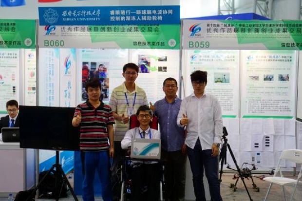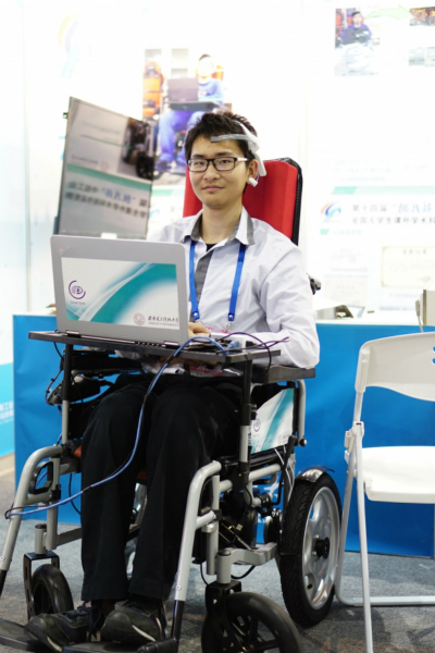 11月17日,朱翊和他的團隊來到了廣州市全國“挑戰杯”的決賽現場。這款新穎而實用的“智能輪椅”很快就吸引了現場的評委,有些評委還親自坐上了輪椅,來體驗僅靠轉轉眼球就能讓它移動的神奇。三天后,“挑戰杯”終審決賽落下帷幕,“睿眼隨行”眼球腦電波協同控制的漸凍人輔助輪椅脫穎而出,榮獲國家一等獎。