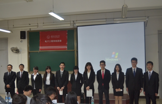 電子工程學院大一共11個團支部參加了本次答辯活動,并由抽簽決定出場順序。簡短的多媒體準備后,本次活動在熱烈地掌聲中正式拉開帷幕。按照會議安排,各支部答辯代表擁有5分鐘時間以PPT的形式對其特色活動進行展示。他們的展示內容,展示形式獨具匠心,別具一格。一幀幀動畫、一首首朗誦點亮了臺下灼灼目光。