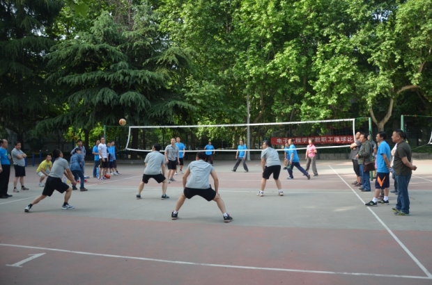 按照比賽規則,電子工程學院各系所自行組建參賽隊伍參加比賽,隊伍構成為5名男性加一名女性。賽制規則采用五局三勝制,參賽組抽簽決定對手,單局比賽不設時間限制,一方勝出則結束本局,小組賽勝利者晉級。電子工程學院總共有九支隊伍參加了此次排球比賽,比賽從4月23日正式開始。每場比賽開始前就有不少隊員提前到場地熱身,試練,提高整個隊伍的配合默契度。比賽中,各組隊員更是使出渾身解數,主攻、二攻手默契配合,發球、傳球、攔網、攻擊,整個比賽精彩異常。每一位參加比賽的教職工都信心滿滿,電院院長廖桂生老師在場上矯健的身姿更是引得全場喝彩。經過幾輪的精彩對陣,最終,電子所隊一路猛進,過五關斬六將摘得了比賽桂冠,而第二名和第三名分別被天線所和電子工程系拿下。比賽的裁判和記分員全部由電院研究生會的同學們擔任。