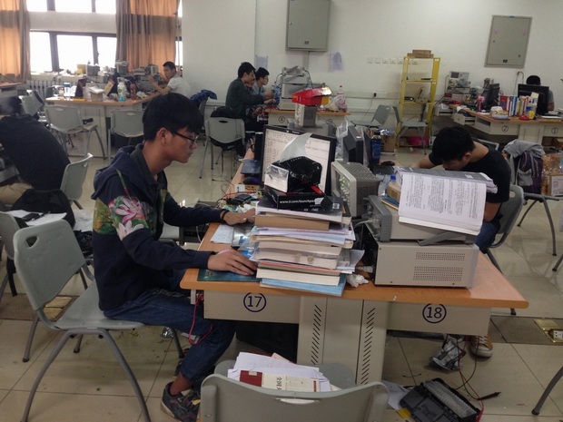 據了解,我院從2014年12月開始,經過理論課培訓、筆試篩選、第二階段校內培訓、電賽校內單人賽等環節,共選拔出36人進行單人單練,并聘任了研究生作為助理教練,在重點考察個人綜合能力之后,選出9支隊參加了此次陜西省工科五校聯賽。
