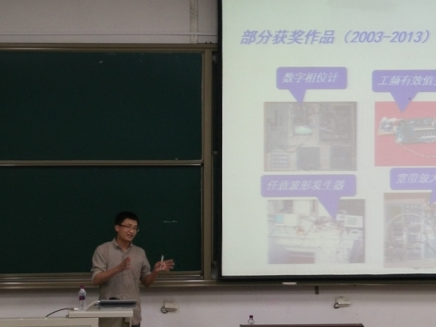 講座伊始,王新懷老師簡單介紹了西電學子近幾年來在各類競賽中獲得的優異成績,并提出了想要出類拔萃何從下手的問題,用簡潔明了的展示告訴我們:理論課程是一切的基礎。接著,王老師向我們介紹了同學們熱切關心的問題,關于理工科電子類校園賽事及競賽之間的關聯性,樸實但又不失幽默的講說了各類校園賽事的性質和他在帶學生參加競賽的過程中那些感動又勵志的故事,更激起了在座的同學對競賽的渴望。
