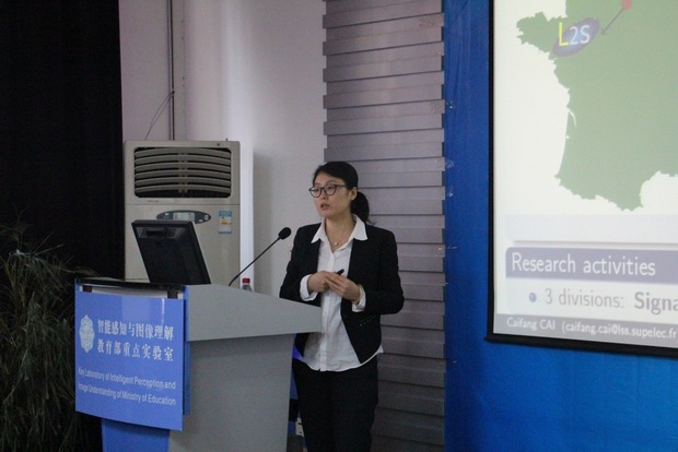 應電子工程學院石光明教授的邀請,法國CNRS-SUPELEC-PARIS SUD(巴黎南大學,原巴黎十一大)Cai Caifang博士于2015年1月20日來我校進行學術交流與訪問。訪問期間,Cai Caifang博士后參觀了電子工程學院航天電子信息研究所,對我實驗室近些年取得的成果給予了高度的評價,并積極推進雙方課題組的合作交流。