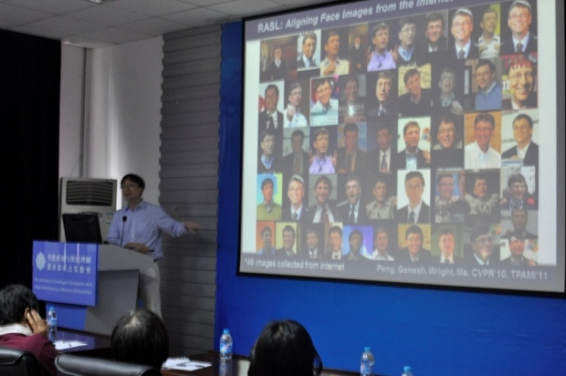 馬毅教授以計算機視覺中的相關問題為背景,對抽象出的數學模型以生動的例子展示了其在圖像處理、機器視覺等領域的巨大影響。整個報告新穎,會場氛圍活躍,效果顯著,吸引了大量師生前來聽講。