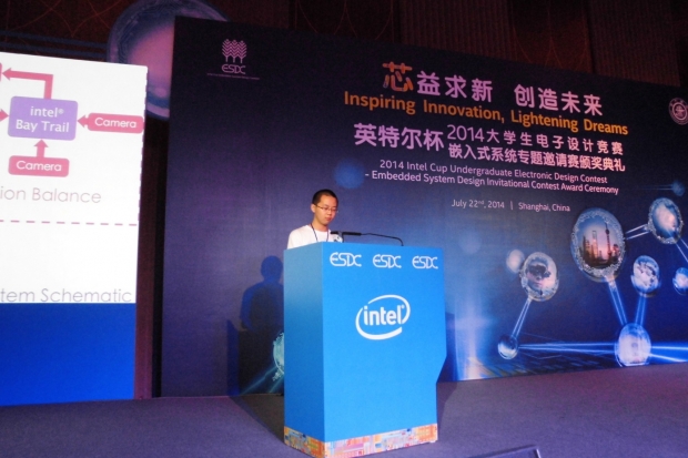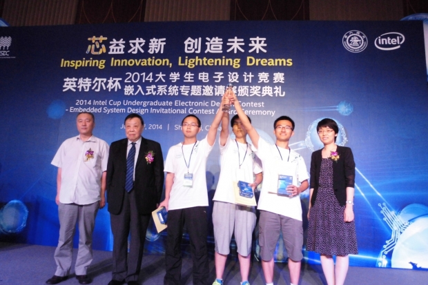 西電新聞網訊(通訊員 胡曉娟)近日,從全國大學生電子設計競賽嵌入式系統專題邀請賽組委會傳來喜訊,在 “2014年英特爾杯嵌入式系統專題邀請賽”中,西安電子科技大學應邀參賽的4支代表隊全部獲獎。其中, 由謝楷、王新懷老師任指導教師,陳國軍、郭梟鵬、仲鳴三位同學組成的參賽團隊設計的“基于視覺體感雙平衡的防暈動系統”在參賽的170件作品中脫穎而出, 奪得本次大賽的最高獎項“Intel杯”。郭梟鵬同學代表全體獲獎學生在大會上發言。