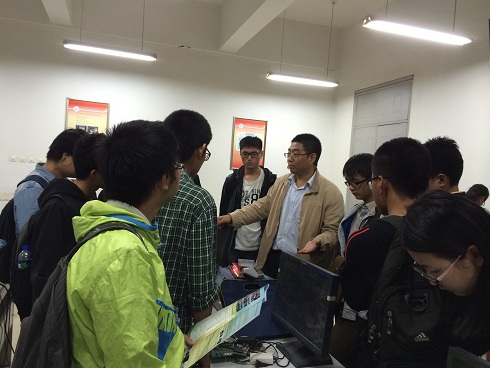 講座結束后中心所有新技術實驗室老師組織學生參觀了實驗中心環境以及各新技術實驗室,并對同學們提出的問題進行了詳細的講解。雖然時間已經是很晚了,但充滿求知欲的同學都不愿離去,圍住老師,和老師熱烈的討論著實驗室的課程等情況。