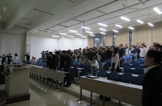 和著美妙的音樂,伴著精彩的視頻,四位主持人拉開了本屆學生會大會的帷幕。首先上臺發言的是學生會主席岳彥丞,他以自身經歷鼓勵新部員們為學生會奉獻,并堅信學生會能給大家一個鍛煉能力,提升自我的平臺,為了使同學們對學生會有更深刻的了解,大會播放了大一新生對學生會的看法與建議剪輯成的視頻。緊接著便是大三主席團成員張帆振奮人心的講話。他強調,加入學生會,就必須肩負責任,就必須尊重制度,另外,還必須具備出色的執行力以及團隊精神。聽完主席的諄諄教誨,八大部長上臺自我介紹并對上一屆工作進行總結,部長們各具特色的講話都讓此次會議的意義非凡。懷揣憧憬,迎接挑戰,這便是接下來大二代表李潔婕的講話主題,最后大一新生代表葉樂煒發言,他帶領全體學生會成員莊嚴宣誓,響亮的聲音,嚴肅的神情,將大會推向高潮。最后,大會在合影中徐徐落幕。