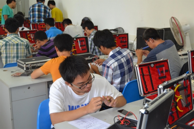 本次培訓是由電院科協科技部主辦,由科技部和網絡部抽調的四名學長導師以及各部門的大二學長學姐共二十余人,一起參與工作,共同完成,培訓從8點半開始,共分為四場,使一百多名大一新部員都得到了指導。一批又一批未來的“科技達人”懷著激動的心情走入培訓教室,講師先提出了有關注意事項,接著對一些簡單的電子元件和焊接技巧進行了講解,而剩下的絕大部分時間留給了同學們進行練習,大家都聚精會神地完成了自己的第一件電子作品,面對同學們提出的問題,學長們也會在一旁悉心地指導和演示。