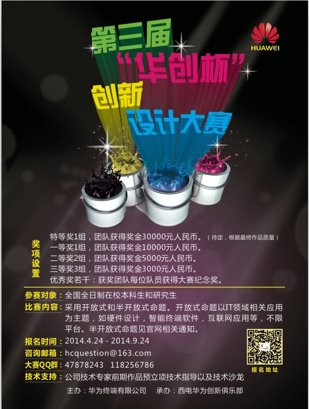第三屆“華創杯”創新設計大賽 2014-04-24 10:49:00 瀏覽次數: 帶上你的“兵器”,開啟最給力的華創征程——第三屆“華創杯”創新設計大賽強勢來襲!誘人的獎金,給力的技術支持,“華創杯”等待實力和新意共同擁有的你前來參與!4.24至9.24日均登陸大賽官網 */huachuangbei進行報名,開啟你的華創遠征,收獲奇珍異寶吧! 上一篇文章:電子工程學院成立“朝光早起協會” 下一篇文章:電院金杰同學入圍第九屆中國大學生年度人物候選人
