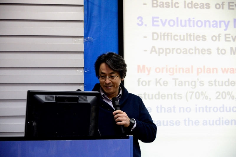 29日上午,Ishibuchi教授在智能感知與圖像理解教育部重點實驗室報告廳作了題為“Evolutionary Multi-Objective and Many-Objective Optimization”的研討會特邀報告。報告會由劉靜教授主持。Ishibuchi教授在報告中對進化多目標優化和進化眾目標優化的研究熱點、關鍵問題和未來發展趨勢進行了系統總結,并詳細介紹了其研究團隊近幾年在進化計算方向的研究成果。