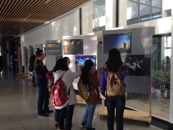 這次活動分三部分組成,第一部分于2013.10.1開始,征集作品,并在圖書館開展題為”jing”攝影展的展覽;第二部于2013.11.15展開,為外場投票環節。根據夏秋之約第二季外場活動收集到的投票數(1132張),選出優秀作品進行重點展覽。第三階段即為展出階段,于2013.12.2開始。一張張由同學們精心拍攝的照片羅列在圖書館的門口,給每一位進入圖書館的同學帶來。看那天際的晨曦是多么耀眼,看那蕩漾的綠波是多么賞心悅目,看那潔凈的露珠多么剔透,在最終的投票中,我們一共選出了15幅優秀的作品參與本次的攝影展。參展地點在南校區圖書館,我們將優秀作品組織做成了50*70cm的單獨展板(如下圖)進行展覽。并且我們將會為優秀作品制作畫冊,并且對攝影師進行獨家采訪。