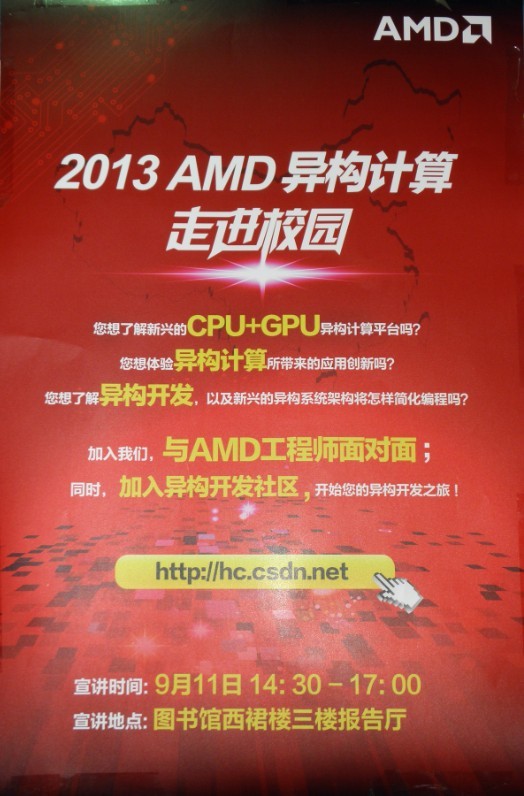 2013 AMD 異構計算走進校園 2013-09-11 02:28:00 瀏覽次數: AMD9.11下午2:30在西電圖書館西裙樓三樓報告廳來舉辦一個關于GPU計算的講座,希望研二和研三的同學都能來參加。為明年的AMD競賽打下堅實的基礎。 西電參加歷屆AMD競賽獲獎情況: 2010---西電學子摘得AMD中國高校加速計算競賽桂冠 http://www.hetaojiu.org/news/newsshow.asp?id=4151 2011--西電參賽隊獲AMD中國高校加速計算競賽亞軍 http://www.hetaojiu.org/news/newsshow.asp?id=4940 20名學子獲AMD-西電多核異構高性能實驗室獎學金 http://www.hetaojiu.org/news/newsshow.asp?id=5623 上一篇文章:關于參加首屆學校“微課”教學比賽的通知 下一篇文章:關于召開學校慶祝教師節暨先進表彰大會的通知
