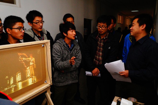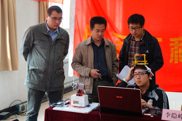 一位大一選手向我們展示了自己的“處女作”。有一個優秀作品的作者是一位大一新生,他的作品主要功能是“用大腦控制攝像頭”。當被問及答辯時有什么感受時,他說“剛開始時還是有點緊張的,但到了后來和老師說著說著就放松下來了”,并且還表示將通過老師的指點,向更深層次進行研究。我們期待著他能做出更優秀的作品。而積累了相對足夠理論知識的大三大四甚至研究生選手,他們展示的作品更是精彩。一位大三選手給我們展示了他設計的播放器:“給予它音頻信號后,信號燈會將頻譜峰值顯示出來,再經過變壓、功放等一系列處理步驟,聲音會從喇叭中傳出來。”