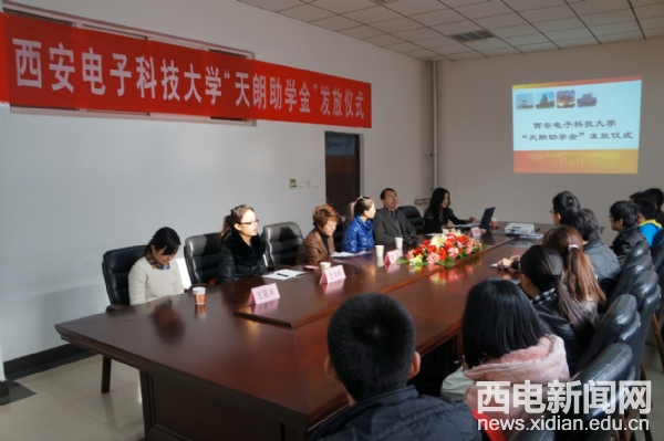 謝晶在儀式上表示,希望通過“天朗助學金”幫助那些需要資助的優秀在校生,讓他們更好地投身學業,也歡迎西電學子到天朗實習和就業。鄧卓峰鼓勵同學們要堅持夢想,不斷拼搏,學有所成,積極為社會做貢獻。電子工程學院09級學生旦喜榮作為學生代表發言,他表示將努力學習,以優異成績回報母校和社會。
