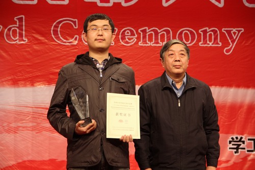 傅豐林教授因長期以來為學校的學科競賽和科技實踐創新活動作出了突出貢獻,學校授予其“學科競賽突出貢獻獎”,龍建成副書記為傅豐林教授頒發了證書和獎金。