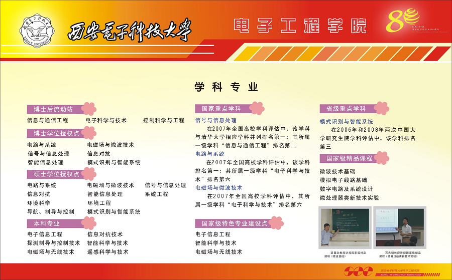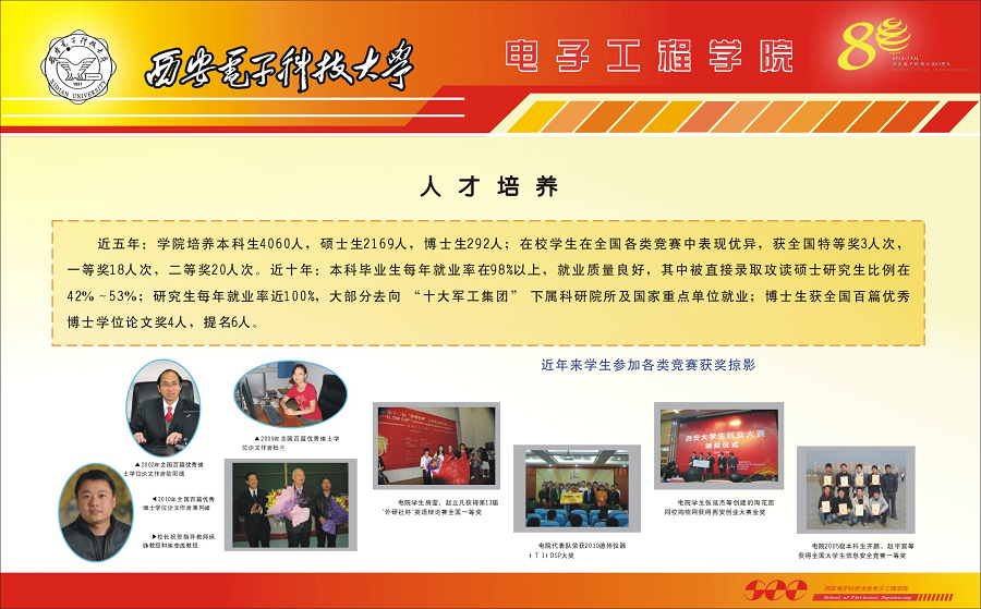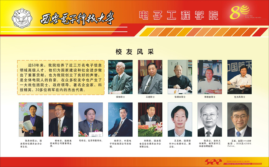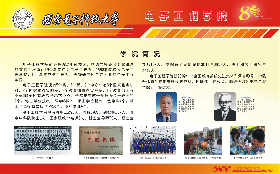西電80周年校慶電子工程學院風采展 2011-08-31 16:45:00 瀏覽次數: 來源:http://80.xidian.edu.cn/html/history/xueyuanfengcai/dianzigongchengxueyuan/2011/0824/307_8.html 上一篇文章:2011年高校教師崗前培訓暨教師資格教育基礎理論知識培訓有關事項的通知 下一篇文章:西電南北校區作息時間表