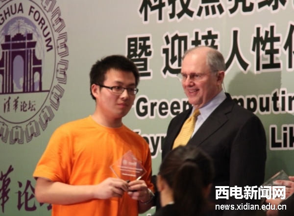 西電新聞網訊(通訊員 竇金娣)2011微軟精英大挑戰“科技點亮綠色生活”創意及展示大賽日前在清華大學圓滿結束。西電微軟技術俱樂部在此次大賽中取得佳績,由李斌、汪文芳等五名同學組成的Phoenix團隊獲全國二等獎,由邵志超、陳建平等四名同學組建的Templar團隊獲全國優秀獎,另外三支參賽團隊獲優秀創意獎。微軟首席研究及戰略官Craig Mundie出席頒獎活動并給獲獎團隊頒獎。