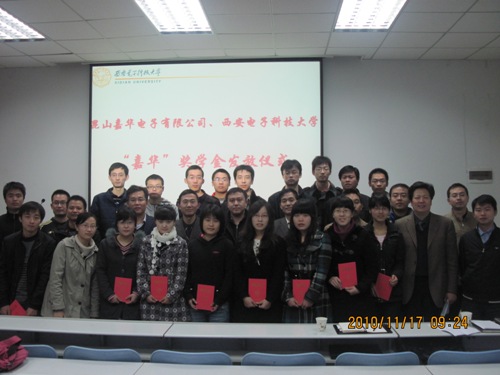 電子工程學院副院長廖桂生老師代表學院對嘉華電子有限公司回饋社會回報教育的精神給予了極大的贊揚,同時勉勵獲獎同學繼續發奮努力,勤奮鉆研,積極進步。