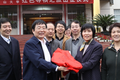 井岡山大學張泰城校長、我校靳雅靜副書記共同為兩校“紅色尋根之旅”代表團授旗