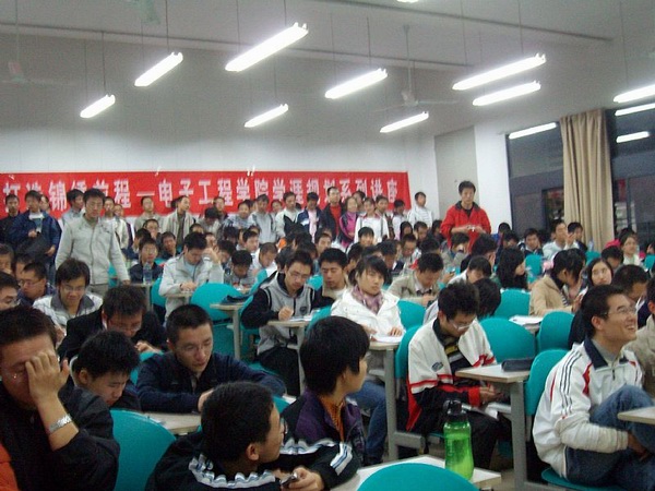 七點整,交流會正式開始。此時能夠容納大約150人的小教室早已人山人海,過道和后排都擠滿了渴望通過此契機與研究生學長們面對面地交流的本科生們。首先,電院學生會的主持人致歡迎辭,歡迎從老校區驅車前來的研究生學長們。其次,電院研會主席團副主席莊雄同學簡單介紹了本次交流會主題并對為促成此次交流會而辛勤籌劃的所有同學表示感謝。然后,由研究生會學術部主持人孟祥飛同學分別介紹了參加本次交流會的7名優秀研究生代表。當介紹到他們的優異成績時,現場不斷響起熱烈的掌聲。