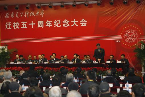 12月12日上午,北校區科技樓報告廳座無虛席,洋溢著歡樂、祥和的喜慶氣氛,我校遷校50周年紀念大會在這里隆重舉行。教育部、陜西省委省政府和西安市政府專門發來賀電,陜西省省長袁純清、教育部黨組成員、部長助理楊周復、陜西省副省長景俊海、西安閻良國家航空高技術產業基地管委會主任金乾生、月球探測控制中心TY工程副總設計師張榮橋、陜西省教育廳副廳長盧力群、中國科學院院士保錚、中國工程院院士張錫祥、中國科學院院士包為民等領導和嘉賓出席了大會。參加大會的還有當年隨校西遷的老專家、老教授,海內外校友代表,兄弟高校代表,全體校領導和師生員工代表。慶典大會由學校黨委書記陳治亞主持。