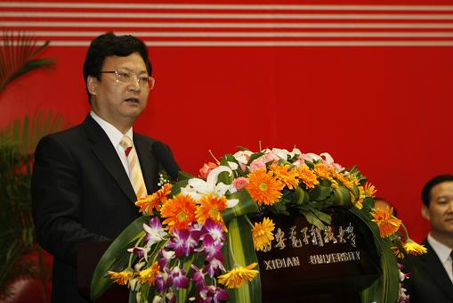陜西省副省長、校友景俊海發表了熱情洋溢的講話。他充分肯定了西電對推動國防現代化、國家信息化和區域經濟社會創新發展的重要貢獻,精辟闡述了陜西省建設科教強省的發展思路,同時對我校未來建設和發展提出了殷切希望。景俊海的講話高屋建瓴,情真意切,內涵深刻。他表示,陜西省委、省政府將一如既往地支持西電的建設和發展,完善共建機制,與教育部、國防科工委通力合作,為學校的進一步發展提供積極而有力的支持。