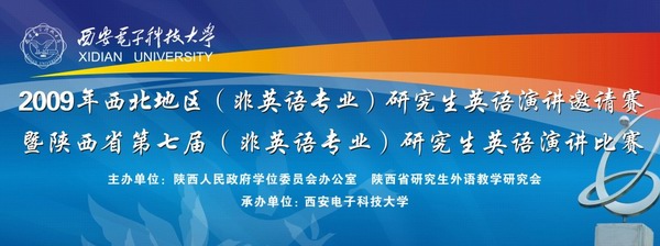 九、 《2009年西北地區(非英語專業)研究生英語演講比賽暨陜西省第七屆(非英語專業)研究生英語演講比賽》辦公室設在西安電子科技大學研究生院,負責人:盧朝陽副院長,白靖宇教授。