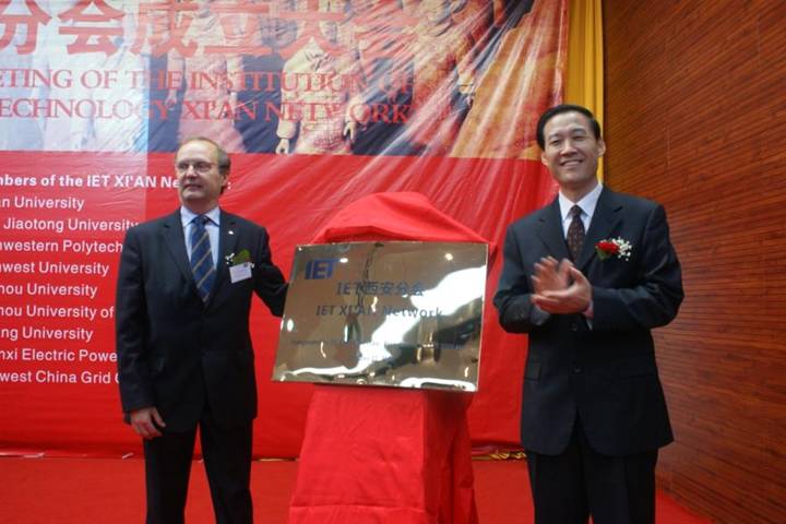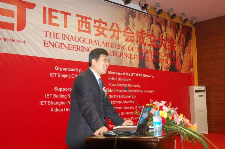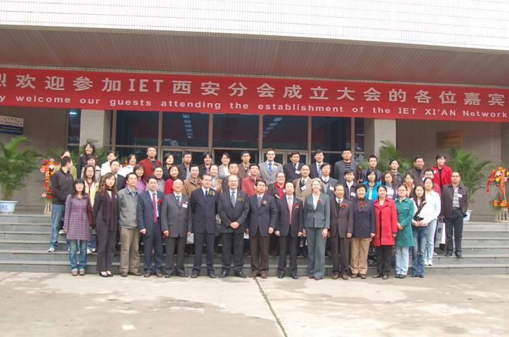 IET西安分會成立大會于2008年10月31日在西安電子科技大學隆重舉行。段寶巖校長和IET主席——英國皇家工程院院士Chris Earnshaw先生出席并致辭,國際合作與交流處處長高新波教授、IET北京代表處總監趙文利先生、IET北京分會主席周孟奇教授和司庫唐曉芳教授、IET上海分會主席陳惠民教授和副主席萬旺根教授、IET英國總部及北京代表處的工作人員、西安分會執委會的各位委員共同參加了本次成立大會。
