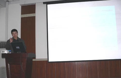 訪問期間,印臥濤博士在電院報告廳面向全校教師和研究生作了題為 “Some Recent -Related Minimization Algorithms for Sparse Solutions” 的學術報告,報告會由石光明教授主持。報告圍繞Compressed Sensing這一新興研究方向中的優化問題展開,內容十分精彩,受到了師生們的一致好評,印臥濤博士還耐心地回答了與會師生提出的各類問題。報告會后,印臥濤博士與電子工程學院的石光明教授等就相關的學術問題和科研合作進行了深入的探討。