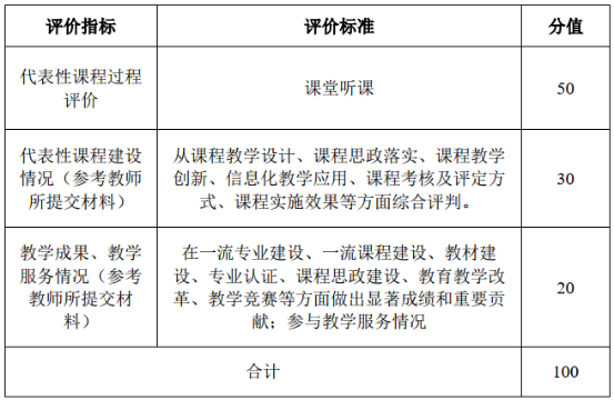 評審將參照代表性課程的學生評教、同行評價、督導評價、智課平臺AI評價,教師的教學成果、教學服務等指標,對教師課堂教學質量進行綜合評價。