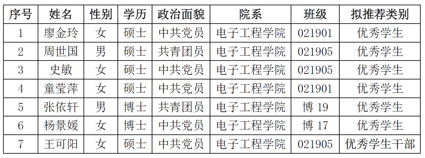 電子工程學院關于推薦至學校參評陜西省2022屆普通高校優秀畢業生和優秀學生干部的評定結果公示 2022-01-05 15:13:00 瀏覽次數: 經過個人申請、學院評選等流程,現將電子工程學院擬推薦至學校參評陜西省2022屆普通高校優秀畢業生和優秀學生干部的評選結果進行公示,如對結果有異議請發郵件至tlzhao@xidian.edu.cn進行申訴,并詳細描述你所發現的問題,申訴郵件請注明姓名、學號、年級等情況。 公示的截止時間為1月7日下午17:30,以郵件發送時間為準。過期未進行申訴默認為對結果無異議。 電子工程學院 2022年1月5日 責任編輯:鄧鑒 上一篇文章:電子工程學院關于2022年6月申請博士研究生學位相關事項的通知 下一篇文章:【考試通知】2021秋電子工程學院部分學位課考試通知
