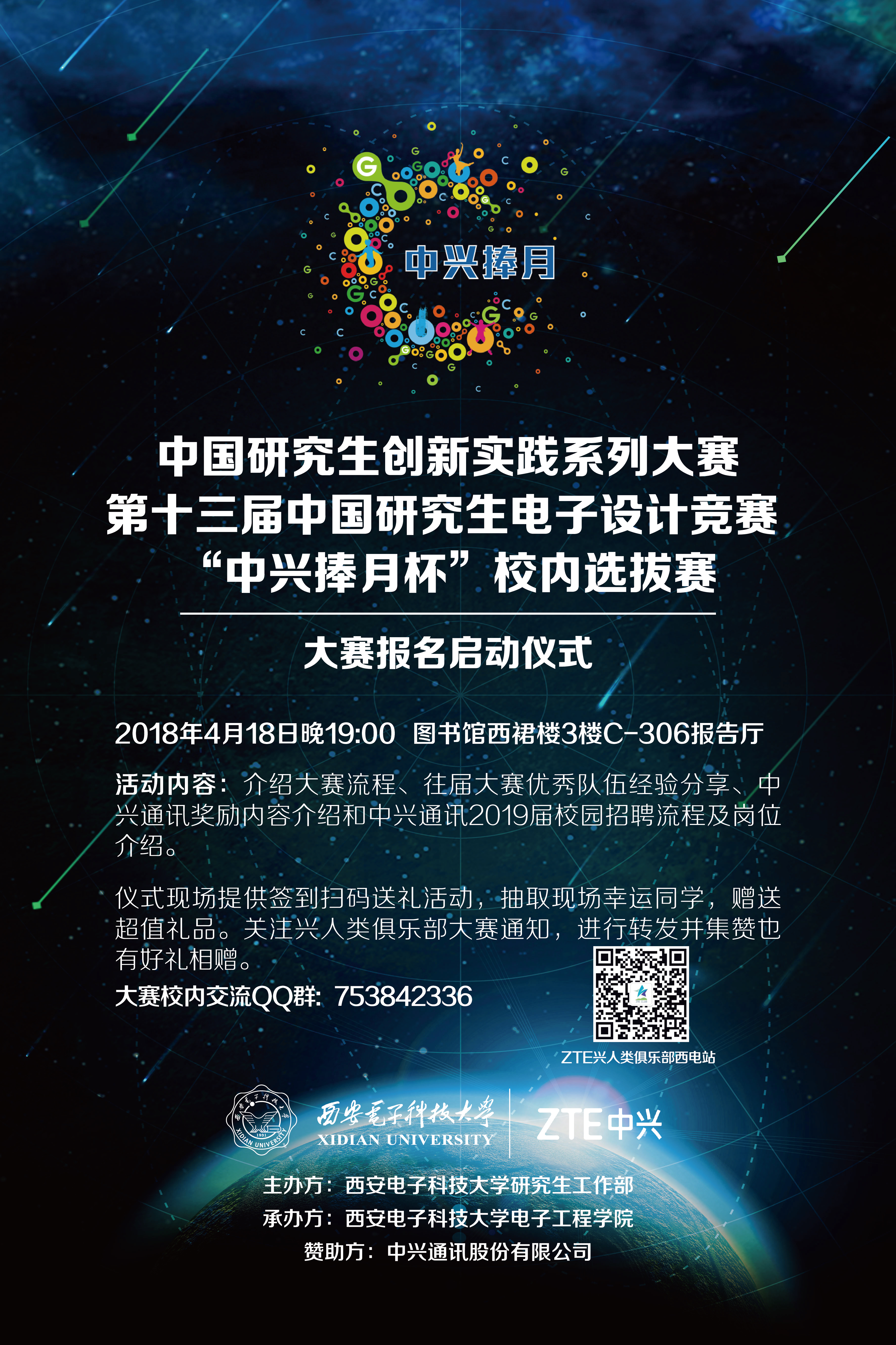 第十三屆中國研究生電子設計競賽 “中興捧月杯”校內選拔賽報名啟動儀式 2018-04-16 09:24:00 瀏覽次數: 上一篇文章:2018年電子工程學院非全日制碩士研究生擬錄取名單 下一篇文章:第十三屆中國研究生電子設計競賽 “中興捧月杯”校內選拔賽公告
