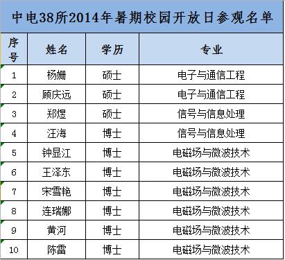 中電38所根據所內需求,對我院這次報名的同學的學歷、專業等信息進行審核篩選后,將名單反饋回來,現公布如下: