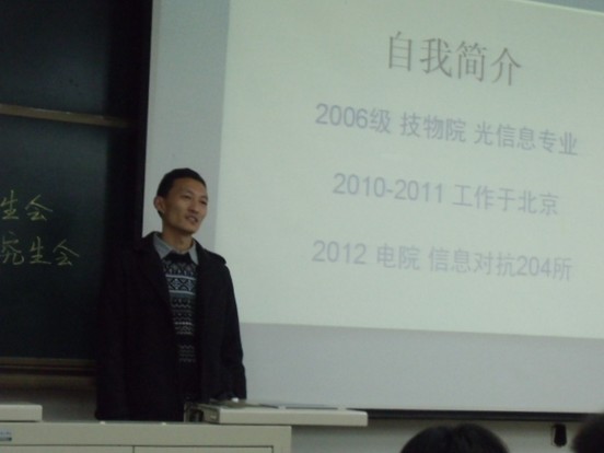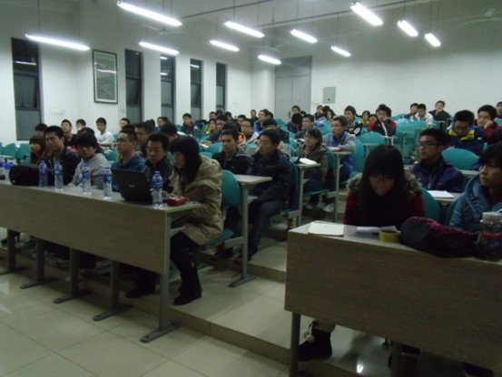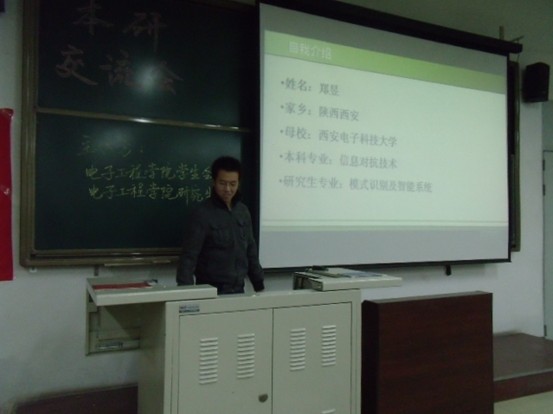 2012年11月16日晚上七點,我們在南校區B樓307教室進行了本研經驗交流會。此次交流會有幸邀請到四位研究生和一位本科生,電院的各位同學都積極參加此次交流會,現場氣氛異常熱烈。