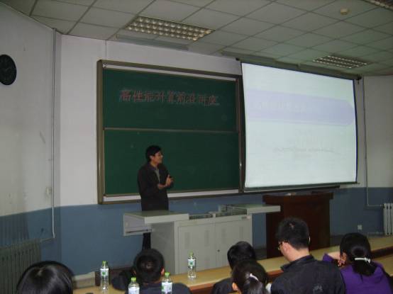 2011年3月31日晚7:00,電院研究生會學術部聯合校研究生會學術部在階梯教室1-01成功舉辦了高性能計算前沿講座。本次講座邀請嘉賓為西安電子科技大學智能感知與圖像理解教育部重點實驗室朱虎明老師及其指導的S.T.A.R.S團隊成員莊雄和李玉寬。該團隊曾在2010年第三屆AMD中國高校加速競賽中榮獲冠軍。
