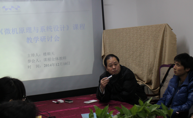 研討會開始時,樓順天老師首先對各位老師的到來表示了熱烈的歡迎,在會議過程中,他指出了微機原理這門課在課程設置,學生素質培養等方面的重要性,闡述了這門課程內容的繁雜,授課的難點,并進一步強調了任課老師認真備課,開展問題式教學,提高學生思考問題能力的重要性。周佳社老師進一步明確了微原這門課程在電院學生培養知識鏈中的重要性,并且強調本門課程要與實際工程,其它課程如數電緊密結合。他指出學生在知識學習和實際應用中存在斷層,在各門課程的綜合應用中存在盲區,任課老師要在授課過程中結合自己的實踐經驗,多向學生傳授實際系統生成過程中的經驗,這樣既可以提高老師的授課質量,也可以提起學生的學習興趣,還可以引導優秀學生展開有益的實驗,提高動手能力。