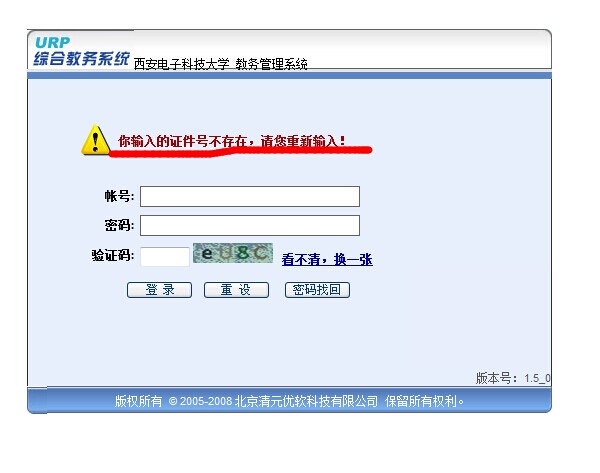 1、當登錄 提示 “你輸入證件號不存在,請你重新輸入” 一般是密碼輸入錯誤或者其他問題,學號是存在的。比如 身份證后6位 帶X X 要輸入大寫的。另外,可以嘗試用初始密碼登錄,身份證后6位。