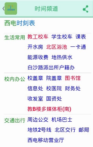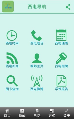 西電導航是能夠通過手機、平板電腦查詢校內各種信息的移動應用程序。可以查詢西電各種工作服務時間、電話,教師聯系方式,學術報告預告,招聘會時間地點,課程表,新聞和微博等等,校內資訊,一切盡在掌握中!