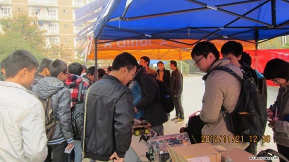 2012年11月21日即本周三 中午電院科協在竹園食堂前舉辦了“星火杯”電院優秀作品的展覽宣傳,旨在宣傳11月22日(本周四)下午三點半在信遠二區206、211舉辦的優秀作品展。屆時將有眾多出色的作品參與展覽,并有作者現場解答各位同學關于作品的疑問。