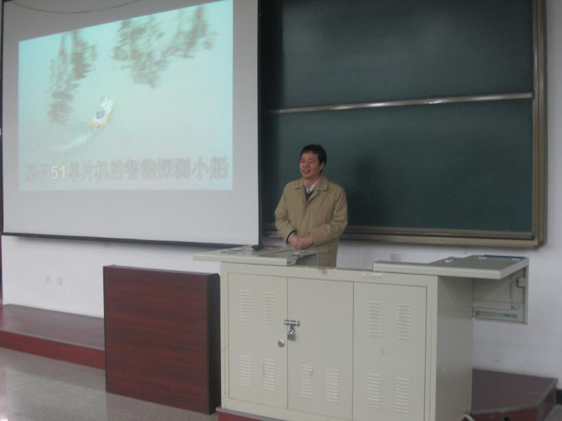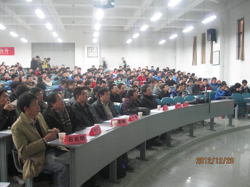 電院宣傳中心訊(通訊員王佩瑤)在知識量大爆炸的今天,擁有綜合能力儼然成為個人發展、國家強大的必然趨勢。對于我們大學生來說,競賽則是培養綜合能力的大舞臺!2012年12月28日下午2:00到5:00,一場主題為“面向對象的科學研究及課外競賽的指導”的講座在D樓212教室成功舉辦。國家級教學名師孫肖子老師,國家級電工電子實驗示范中心主任、電子工程學院副院長石光明老師、國家級電工電子實驗示范中心副主任周佳社老師,電子工程學院任愛峰,袁曉光,王新懷,李甫等老師蒞臨并開展指導,電子工程學院團委書記孔東組織講座并到場指導。