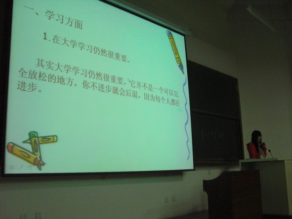 12月18日晚,巡回報告團第二場報告會在D—206舉行,電子工程學院09級優秀學長楊雪、戶盼鶴為400余名大一學生帶來題為“大學如何分配時間”和“且行且珍惜――淺談讀怎樣的大學及怎樣讀大學”的報告。楊雪結合自身學習經歷,談了如何在平時及考前更有效的分配時間,向廣大師弟師妹介紹“每日任務分配法”等實用學習技巧。戶盼鶴同學此次報告的主要內容集中在如何盡快適應大學生活并樹立學習目標。