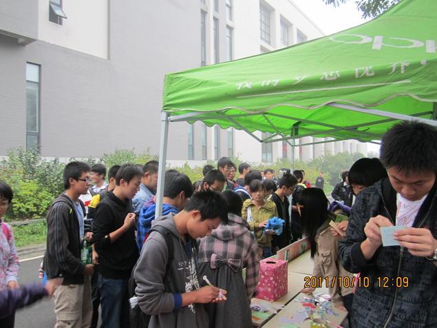 (供稿:電院宣傳中心)2011年10月10日中午,電院團委“夏秋之約—第二季”寄語活動在丁香住宿樓下順利舉辦。本次活動是電院學子獻禮母校80周年華誕活動系列的第五部分。整個活動系列由電子工程學院主辦,電院團委承辦,力爭以各種形式的活動表達電院學子對母校的祝福。