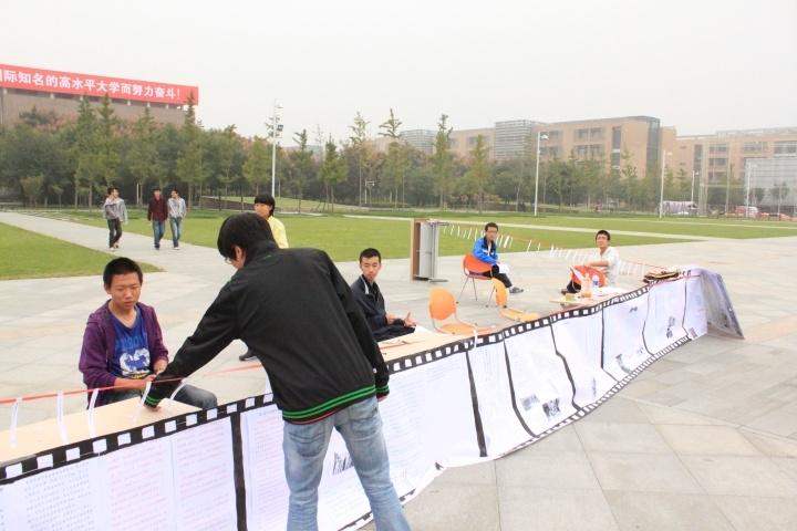 在校史長卷上方掛滿了寫著校史問題的紙條,參與活動的人可以摘取紙條回答上面的問題贏取獎品,活動組織者通過這樣的形式對同學們進行校史教育,令西電光榮的八十載風雨歷程深入人心,讓西電學子由內向外的感到驕傲和自豪。