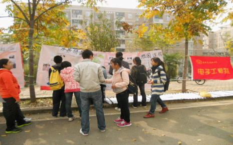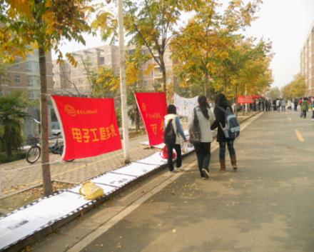 電院宣傳中心訊(通訊員韓倩)2011年11月10日中午12點,電院團委在丁香餐廳門口為同學們展示了關于母校80周年校慶系列活動的優秀作品……