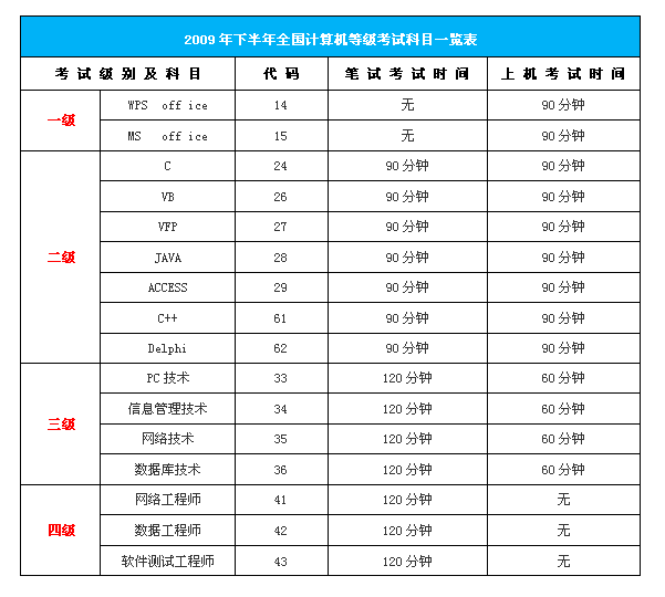 2009年6月第30次全國計算機等級考試報名工作已經開始,具體安排如下: