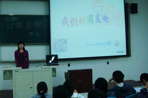 經過前期篩選,共有九個團支部參加了本次評選,各支部代表都以ppt的形式向評委和觀眾們講解了過去一年本支部的活動情況,分別從支部組織建設、思想建設、學風建設、科技活動、社會實踐和文娛活動等六個方面對本支部進行了全面而細致的介紹。