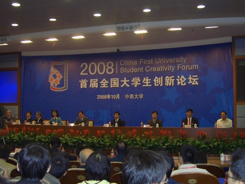 由教育部高等教育司主辦、中南大學承辦的首屆全國大學生創新論壇于2008年10月25日至27日在中南大學舉行。教育部高教司副司長劉桔,湖南省政府副秘書長姜儒振,中南大學校長黃伯云院士以及進入國家大學生創新性實驗計劃的120所高校的450多名師生參加了本次論壇。我校參加國家大學生創新計劃的學生代表及教務處老師應邀參加了此次論壇,并作相關報告。