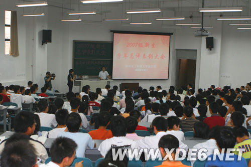 學生工作處副處長徐克、黨委宣傳部副部長強建周、機關黨委書記王俊奇、校團委書記李波、電子工程學院黨委副書記鄧卓峰、計算機學院黨委副書記王衛東、理學院黨委副書記徐戰利、新生部主任梁瑋也出席了大會,全體07級輔導員、學習導師和新生部學習之星、學習標兵及學生代表500余人參加會議。大會由新生部副主任陳武主持。(新生部)