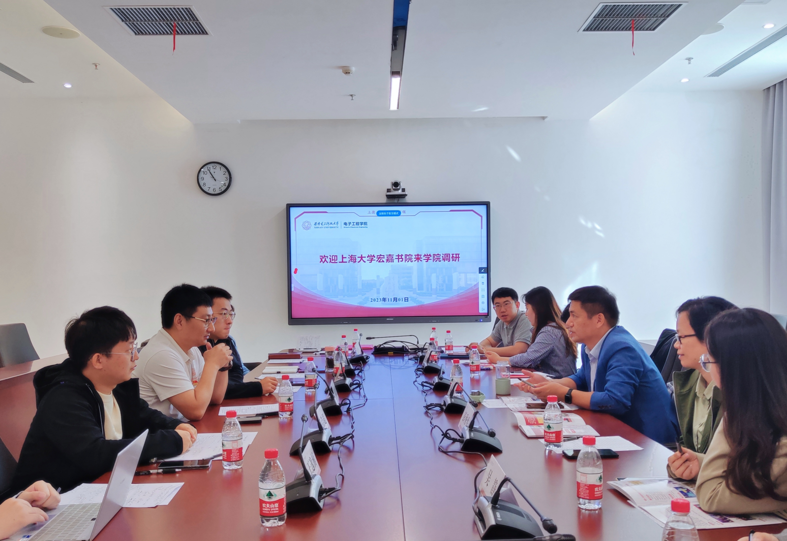 隨后,在座談會上,雙方就新時代如何更好適應學生需求、促進學生全面發展進行了深入的探討和交流。我院團委副書記韓旭首先介紹了電子工程學院在人才培養模式、學生管理模式及課程體系建設等方面的做法。他指出,我院一直致力于將學生工作與學院中心工作相結合,以學生全面發展為目標,不斷推進學生工作的創新發展。上海大學陳濤院長分享了學生工作中的典型做法與先進經驗。他表示,上海大學在學生工作中注重全面發展,不斷創新工作方式和方法,通過開展各種形式的活動,增強學生的綜合素質和能力。雙方老師就加強學生思想引領、完善心理健康教育工作機制、等方面的具體措施進行了充分探討交流。